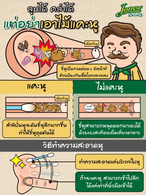 ถ้าอยากแคะหู ให้แคะได้ลึกเท่าที่นิ้วมือเราเข้าได้ก็พอ และ ท่องเอาไว้ให้ขึ้นใจว่า