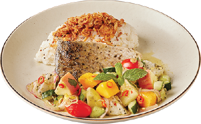 ข้าวปลากะพงยำผลไม้