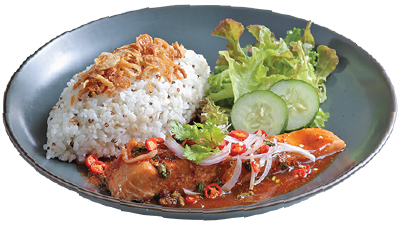 Salmon Rice with Spicy Larb Sauce