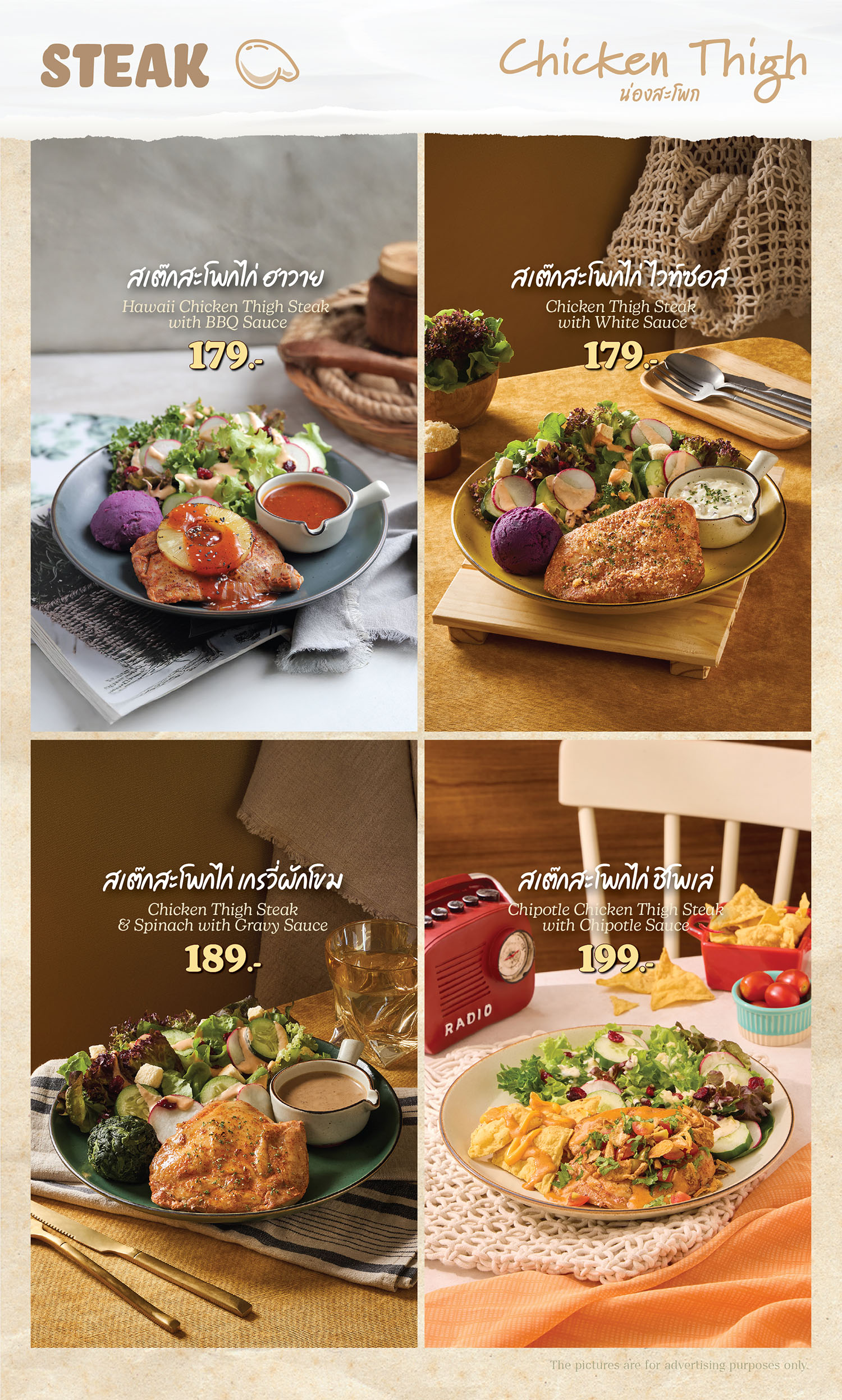 สเต๊กชิ้นโต ซูวีอย่างดี นุ่ม ชุ่มฉ่ำ มีให้เลือกทานทั้ง ไก่ หมู ปลา มากมายตามสไตล์คุณ
